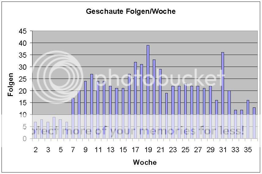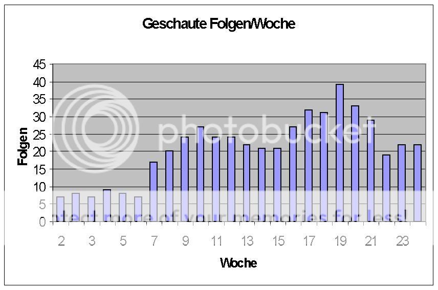 Now just an overview of how many series I've seen in which week (where we see that Excel does not can count):